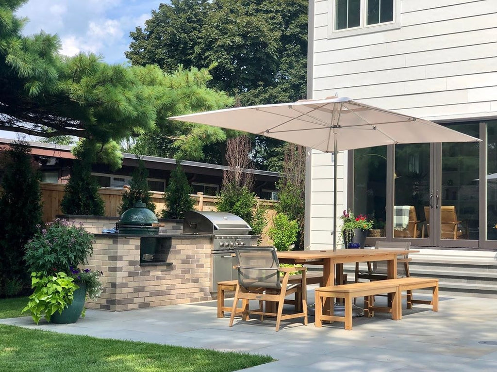 The table length can be easily adjusted using just one, or both, of the two self-storing butterfly leaves. A stationary center section makes it unnecessary to remove an umbrella when adjusting the table size.